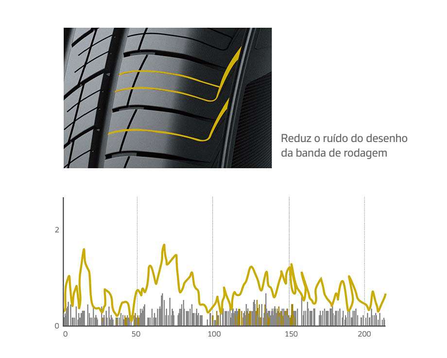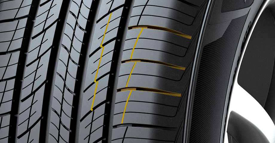 As ranhuras em direção radial proporcionam melhor manuseio em condições úmidas e secas, maior rigidez. As ranhuras laterais oferecem uma melhor resistência à aquaplanagem.