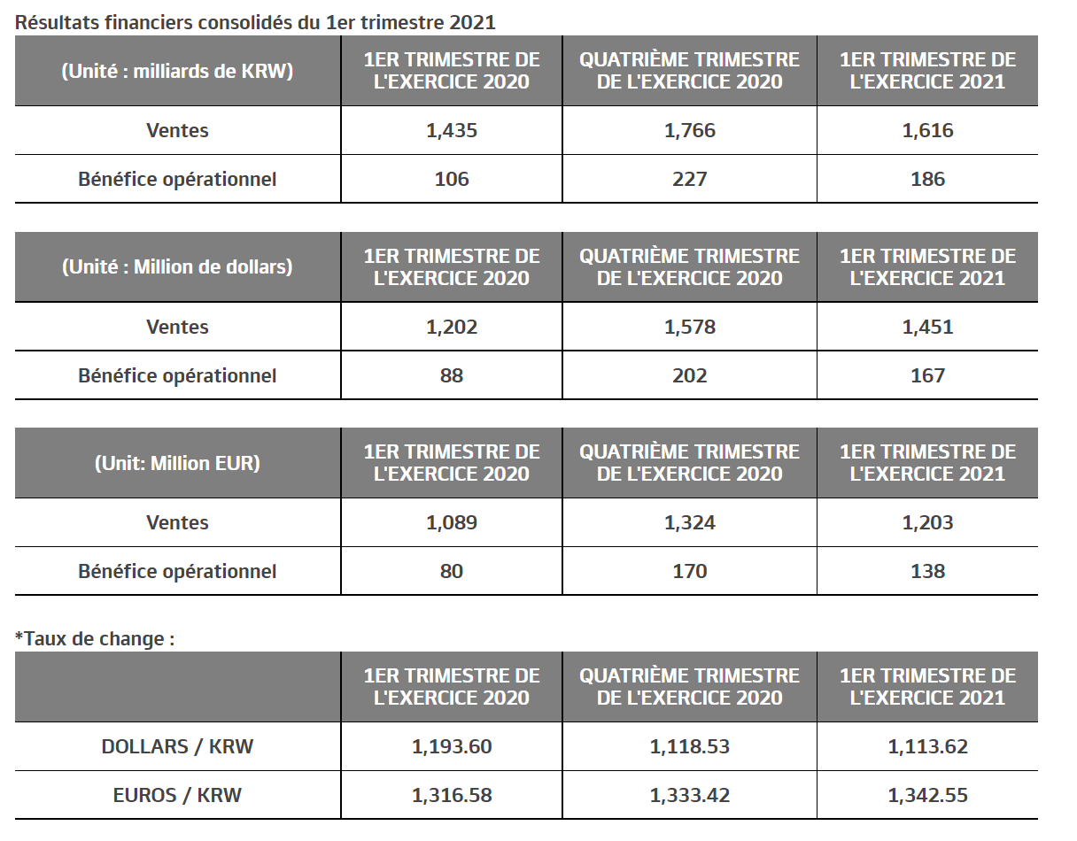 - Les activités mondiales montrent des signes de reprise stable, avec des ventes atteignant 1,61 trillion de KRW et un bénéfice d'exploitation de 186 milliards de KRW, soit une augmentation de 12,6 % et de 75,5 % en glissement annuel respectivement.