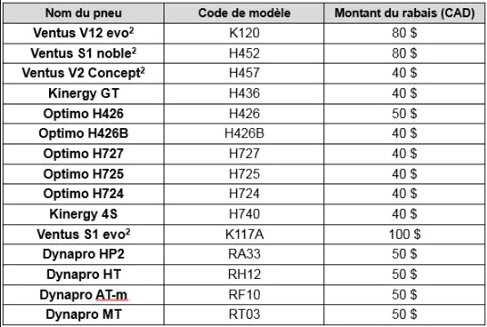 HANKOOK TIRE CANADA OFFRE DES ÉCONOMIES SUPPLÉMENTAIRES