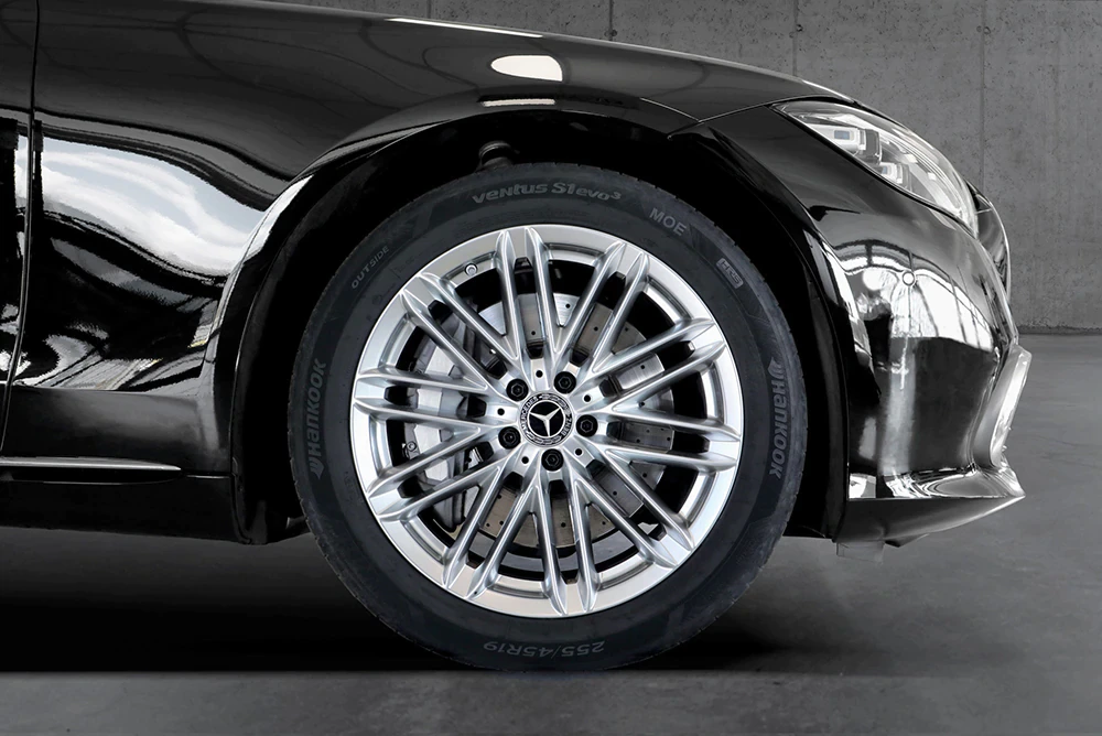 Le modèle Ventus S1 noble 2 en dimension 255/40 R20 pour cette voiture est encore plus confortable. Le marquage « MOE-S » (Mercedes Original Extended Silent) sur le flanc du pneumatique indique qu’il est particulièrement silencieux. Afin de répondre aux exigences élevées en matière de bruit pour cette catégorie, les ingénieurs ont fait appel au système Hankook Sound Absorber™. Cela implique l'intégration d'une plaque spéciale en mousse de polyuréthane à l’intérieur du pneumatique lors du processus de fabrication. La plaque minimise les vibrations de la colonne d'air à l'intérieur du pneumatique que l’oreille perçoit comme un bourdonnement particulièrement désagréable. Les pneumatiques Hankook Sound Absorber™ peuvent réduire le niveau de bruit maximal de cinq à sept dB(A) et sont particulièrement adaptés aux pneumatiques à ultra hautes performances qui ont de grandes cavités de résonance.