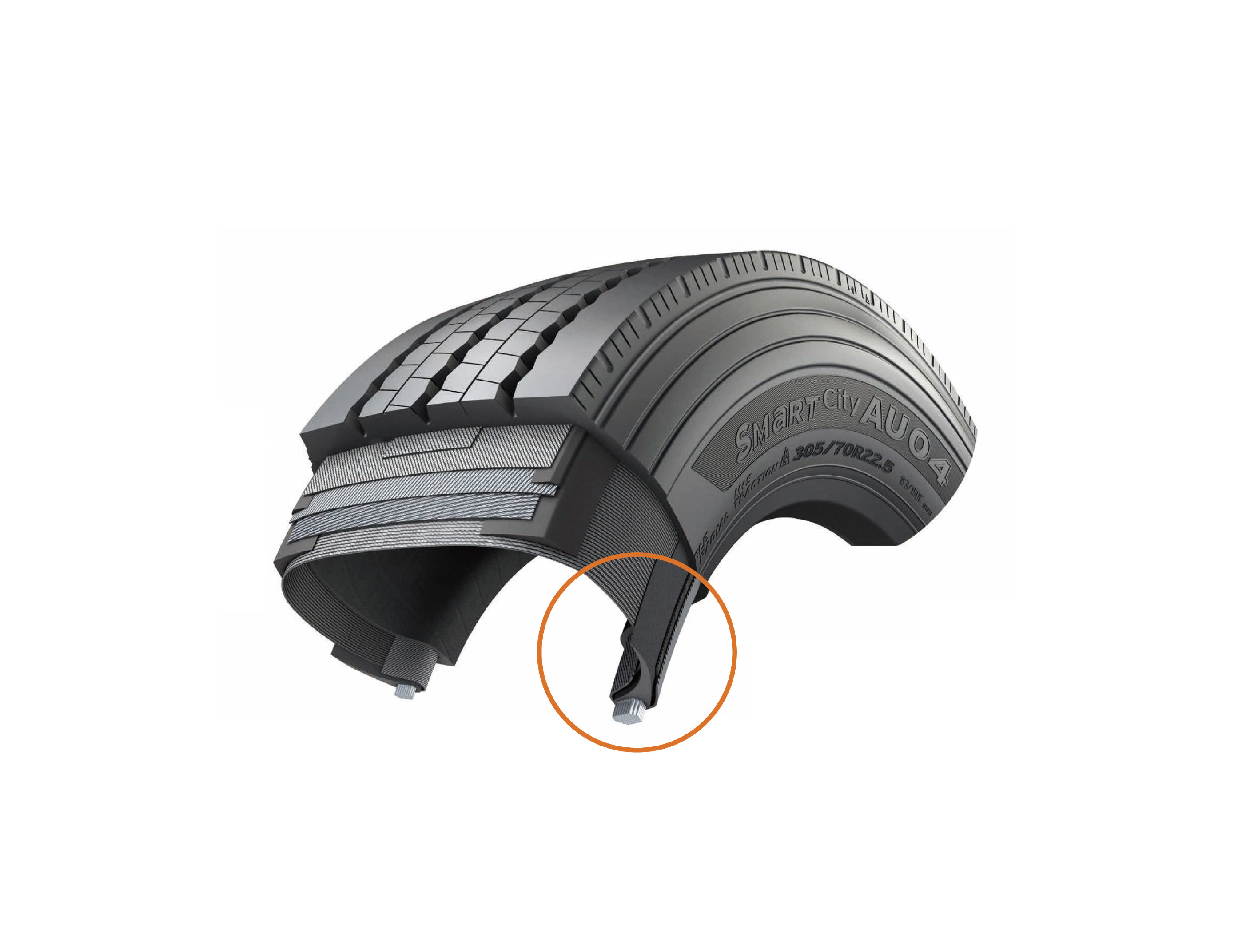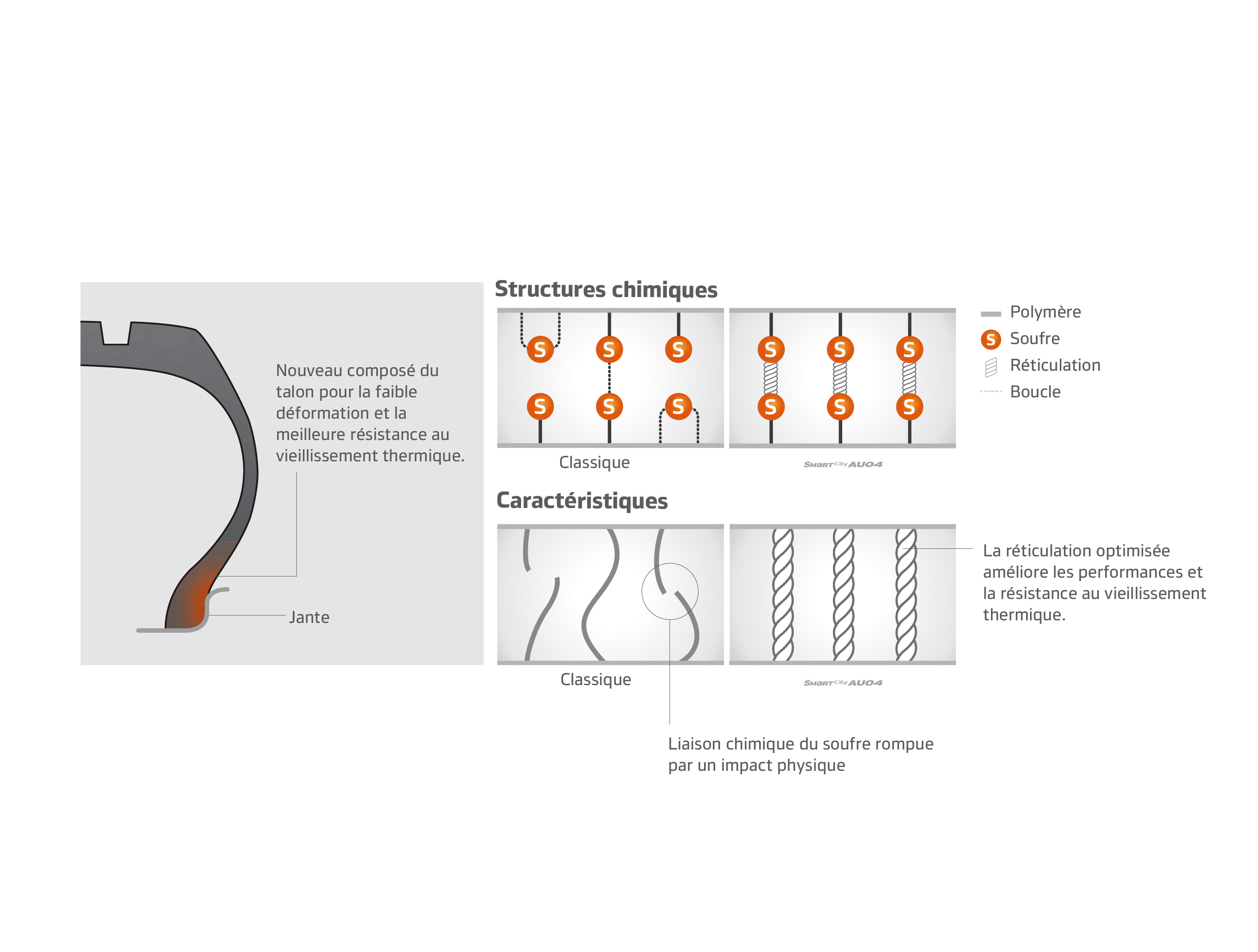 Nouveau composé pour une meilleure rechapabilité. Grande amélioration de fluage et de la résistance au vieillissement thermique → Diminution de la fissure de la tringle.
