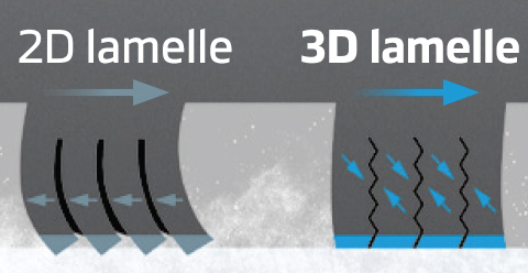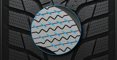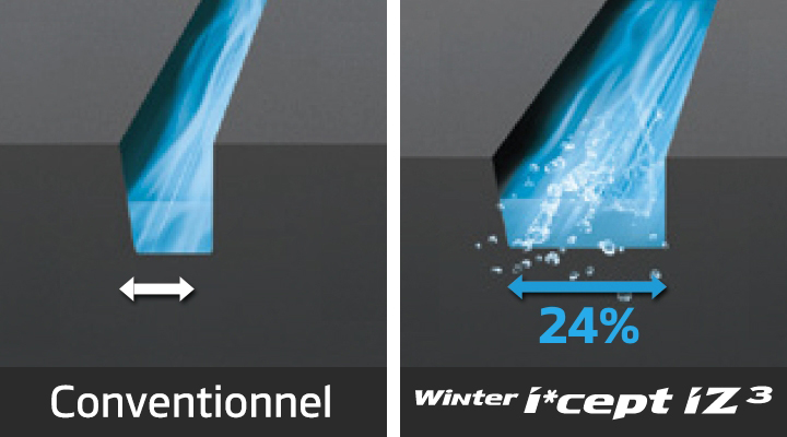 La lamelle hivernale en 3D et les rainures larges en forme de V offrent un freinage et une direction améliorés sur les routes de glace, mouillées et sèches.