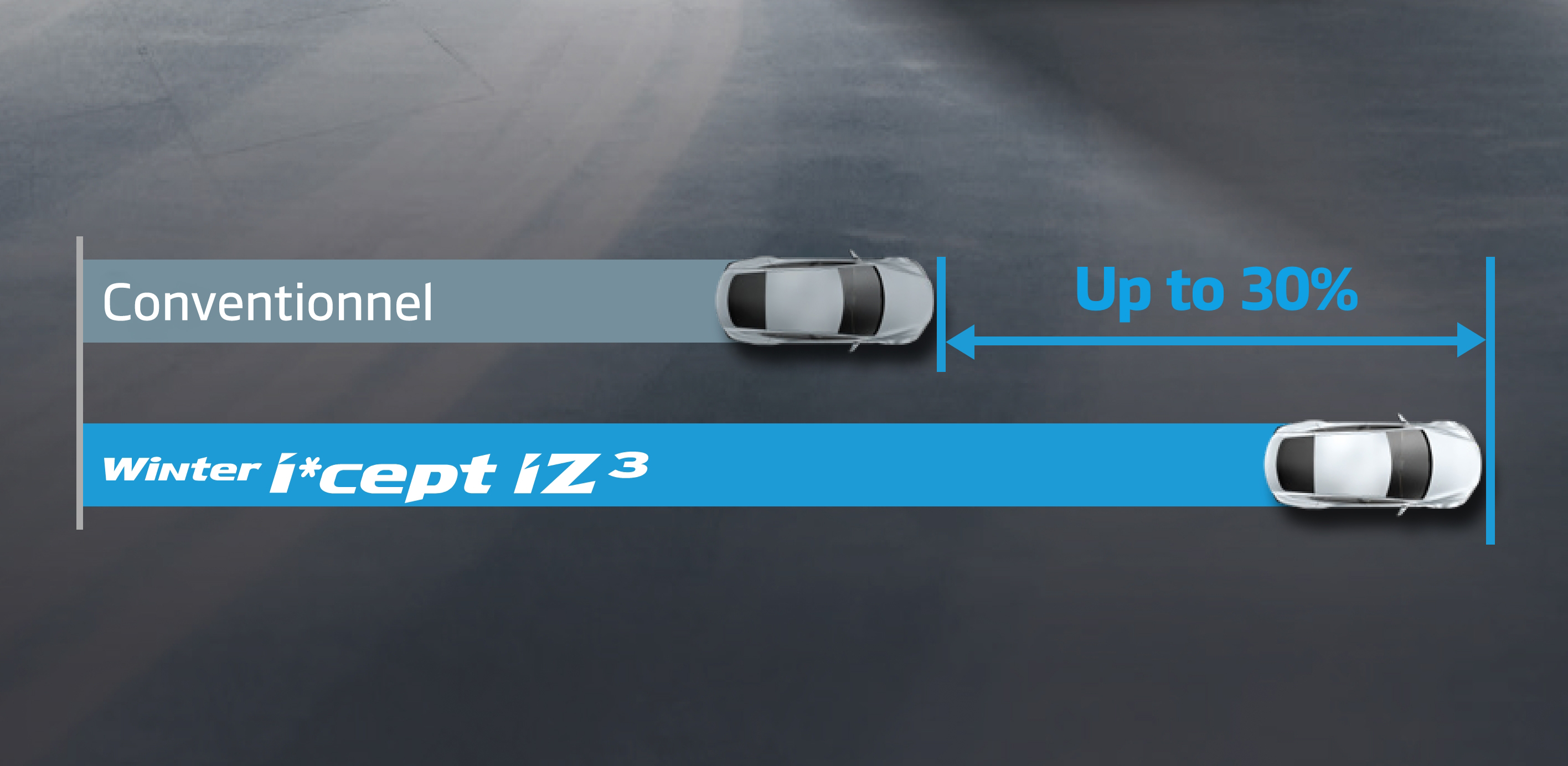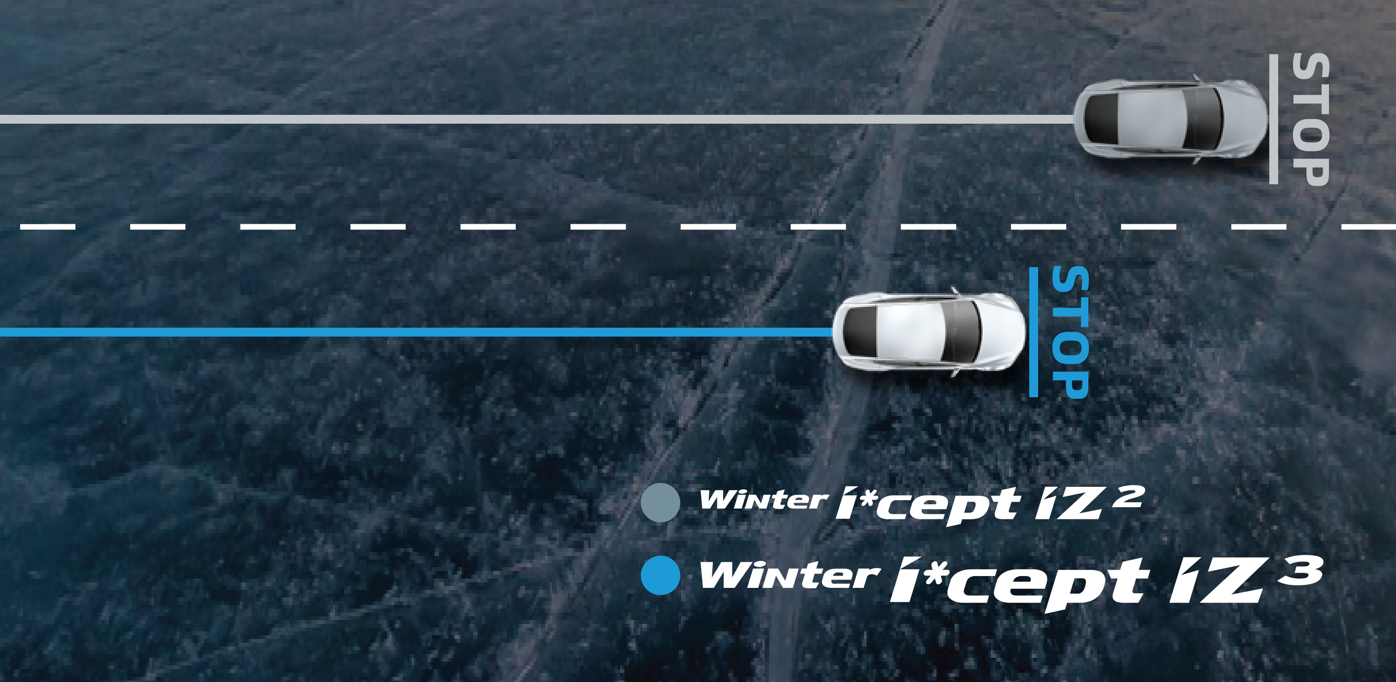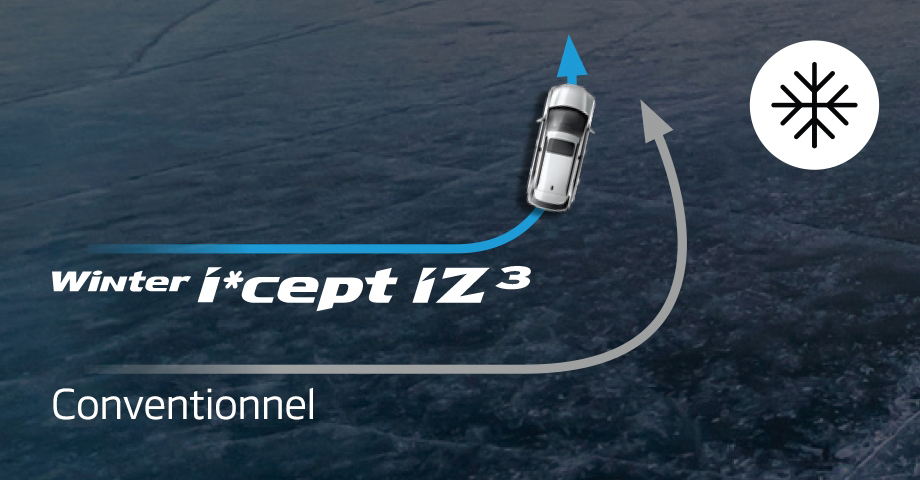Le nouveau composé i*cept et la technologie de motif i*cept assurent un freinage et une accélération exceptionnels sur les routes de glace.