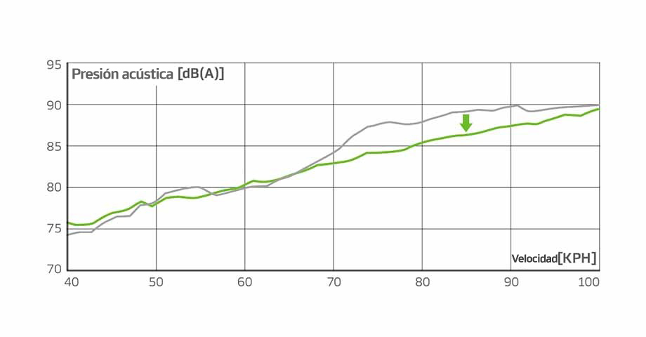 El tamaño preciso de los tacos reduce el ruido de la carretera.