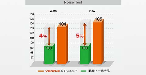 Ventus S1 Noble²采用侧填充软垫改善了轮胎的耐用性。第一带束层和第二带束层之间的橡胶板有助于防止轮胎带束层边缘的分离,从而提高轮胎的耐用性。