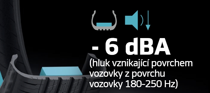 (Použití pěnové technologie: technologie, která rozptyluje hluk z povrchu vozovky a snižuje vnitřní hlučnost pneumatiky.)