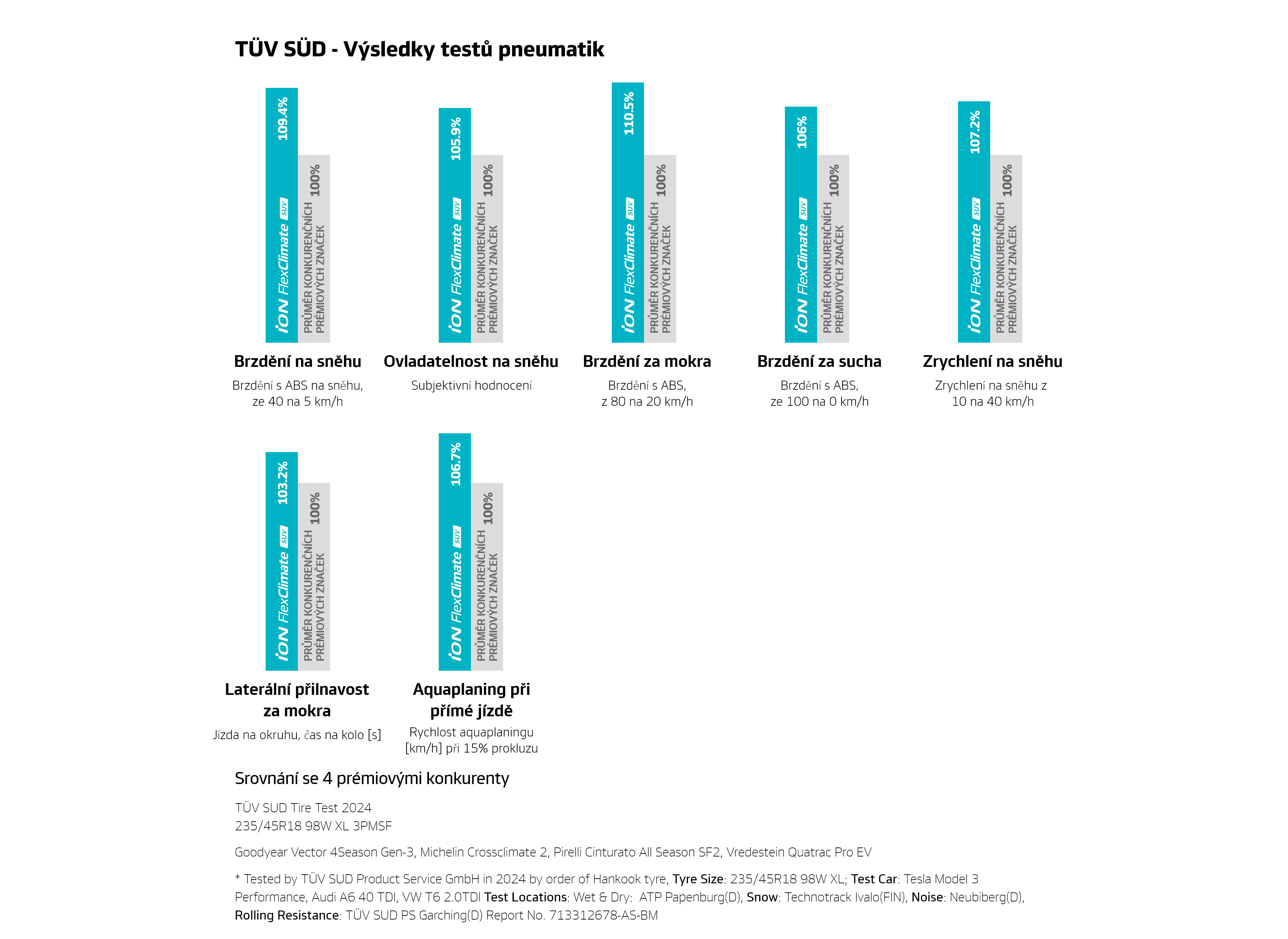 Elektromotory jsou téměř bezhlučné. To v konečném důsledku způsobuje, že řidič více vnímá hluk pneumatik. Díky technologii i Sound Absorber nabízí pneumatika iON FlexClimate SUV tichou a příjemnou jízdu při všech rychlostech.
