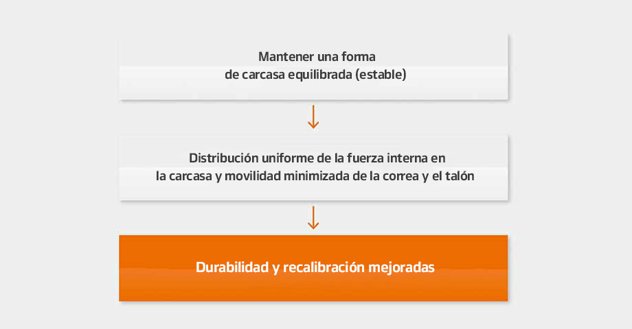 La tecnología SCCT está diseñada para una deformación constante del perfil. Si el perfil de la carcasa no se puede mantener de forma constante, la fuerza interna sobre la carcasa se concentrará en un punto específico (borde del cinturón de la carcasa). Por el contrario, la tecnología SCCT controla la dispersión de las fuerzas internas para una mayor durabilidad. SCCT permite que Hankook Tire desarrolle neumáticos equilibrando la rigidez óptima con la forma de contacto que mejora el rendimiento, la seguridad, las curvas, el frenado y la durabilidad.