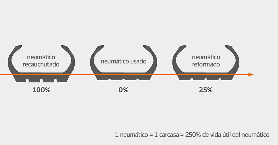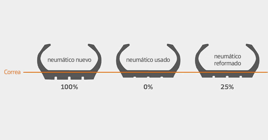 Los neumáticos prémium de Hankook se fabrican con un diseño de carcasa resistente y una banda de rodadura adicional con ranuras para ofrecer una segunda vida útil del neumático ranurado de nuevo y una tercera vida útil del recauchutado.