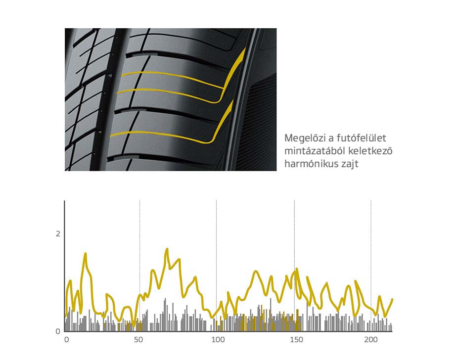 A hosszirányú lamellák javítják a kezelhetőséget száraz és vizes úton egyaránt, a blokkok alakzáró összekapcsolása által. Az oldalirányú csatornák növelik az aquaplaning ellenállást.