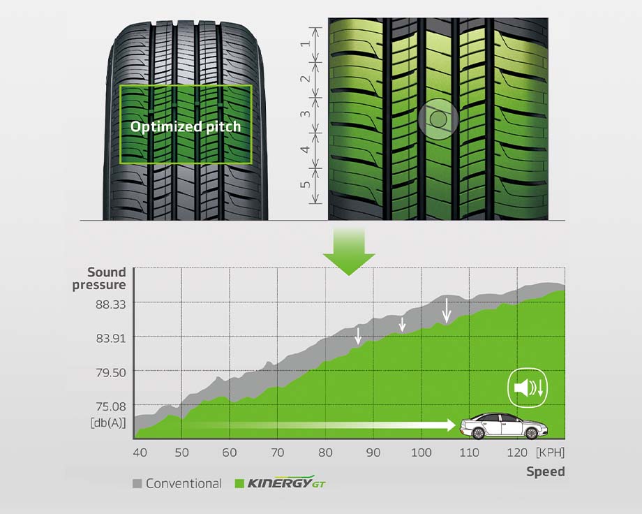 (Menggunakan teknologi busa: Teknologi yang menyebarkan suara dari permukaan jalan dan menyerap guncangan di dalam ban)