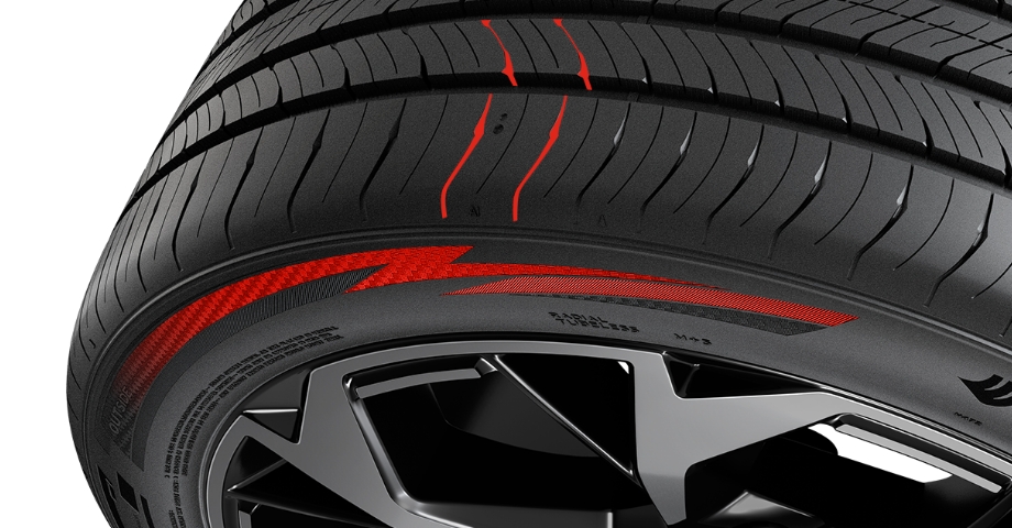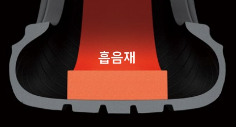 (Foam 기술 적용 : 타이어의 내부에 노면에서의 소리를 분산시키고 충격을 흡수하는 기술)