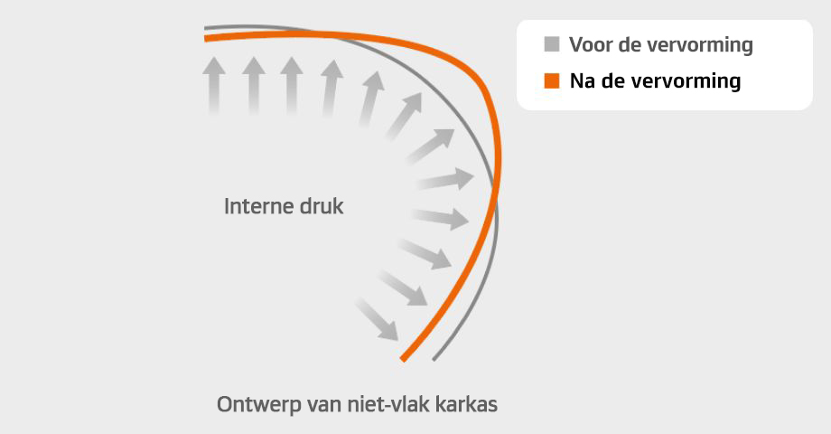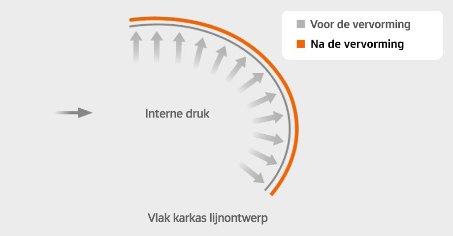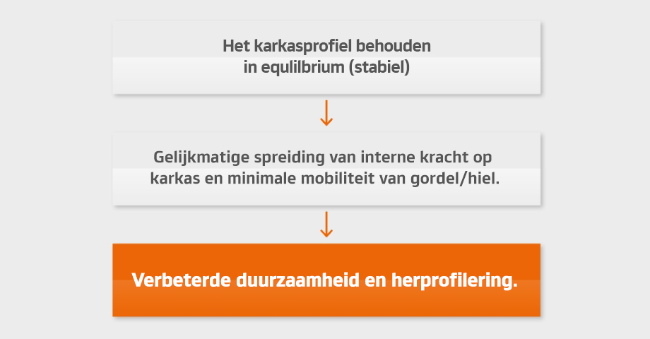 SCCT is ontworpen voor constante profielvervorming. Als het profiel van de karkas niet constant kan worden gehouden, wordt de interne kracht op de behuizing geconcentreerd op een specifiek punt (riemrand of opstaande rand van de behuizing). SCCT daarentegen regelt de spreiding van de interne krachten voor een betere duurzaamheid.