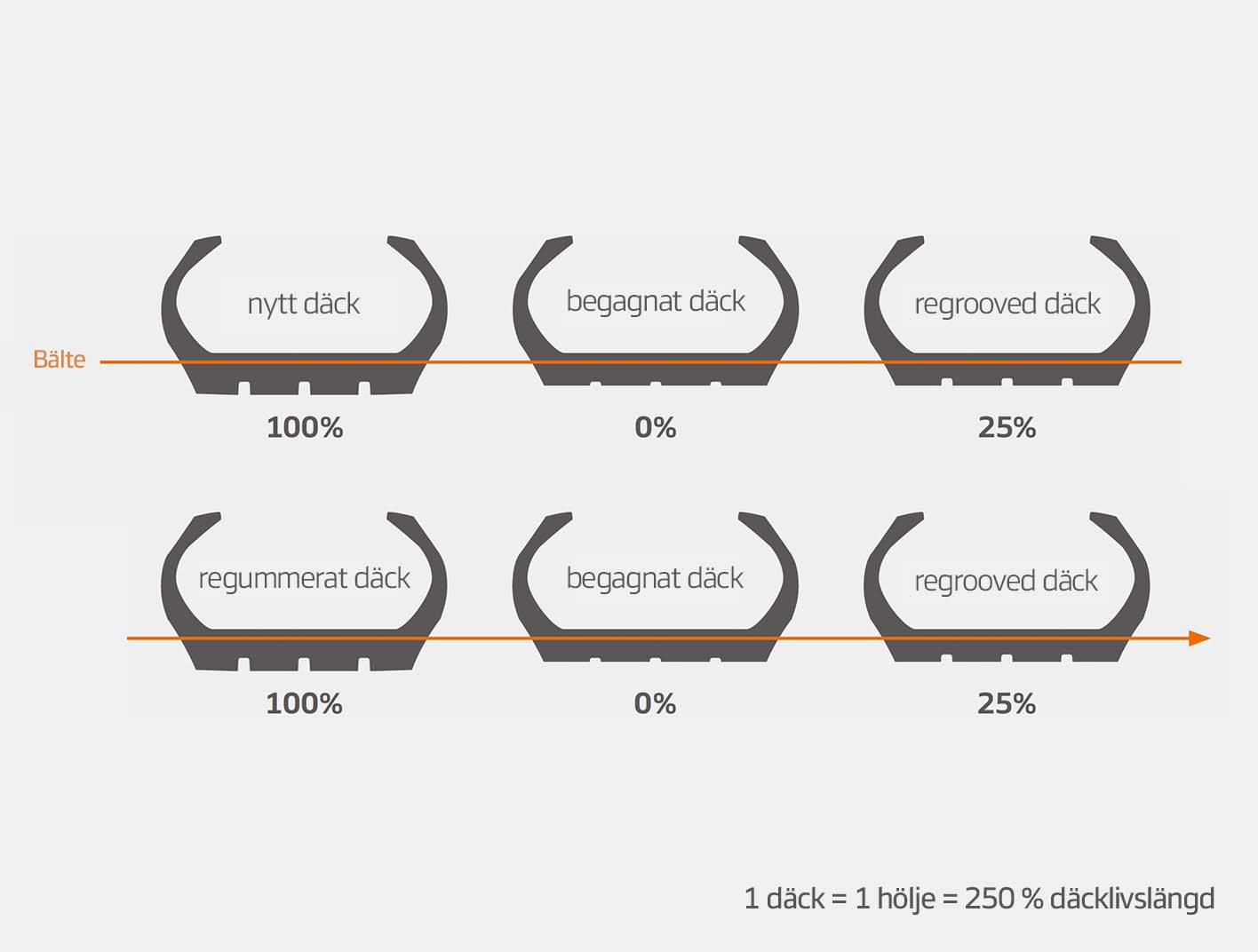 Premiumdäck och stomme som ger upp till ett 250 % längre däckliv