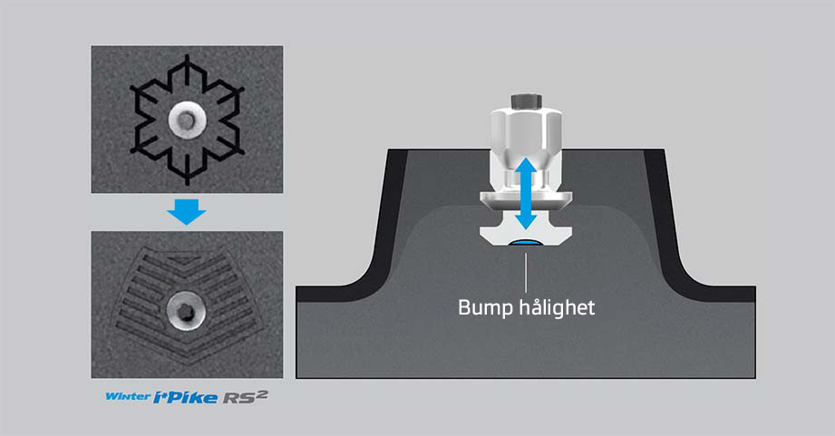 Under dubben dubbstiftet har ett tomt utrymme skapats för att minska påverkan på vägen. Genom ett ökat antal dubb förbättras även prestandan.