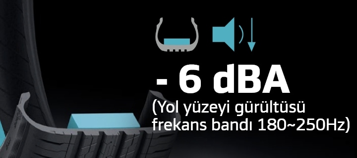 (Foam Teknolojisinin uygulanması: Sesi yol yüzeyinde dağıtan ve lastik içindeki ses dalgalarını absorbe eden teknoloji)