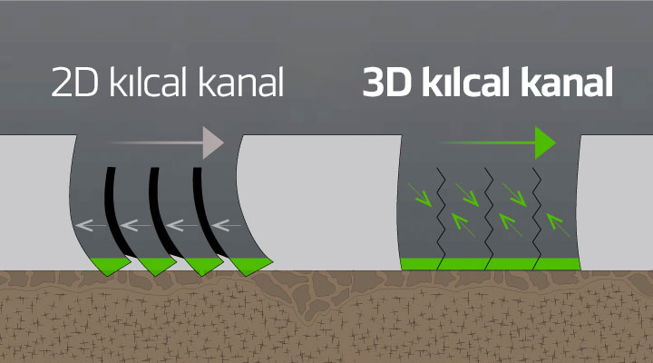 Geniş ve yüksek açılı oluklar ile geliştirilmiş tahliye performansı.