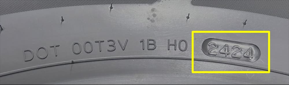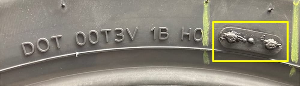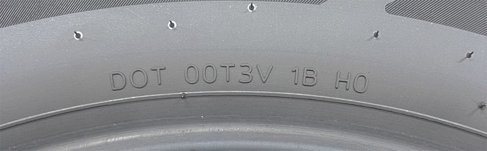 The affected tires were produced between January 17, 2024, and February 28, 2024. The U.S. Department of Transportation (“DOT”) identification number of the affected tires is 00T 3V 1B H0 0324 - 0924. The DOT number can be found on the sidewall near the bead, as shown below. The week and year production date code is a four digit number found at the end of the DOT on just one side of the tire, the first two digits representing the week of production, and the last two digits representing the year of production. An example, code 0924 would indicate the 9th week of year 2024 as the production date.
