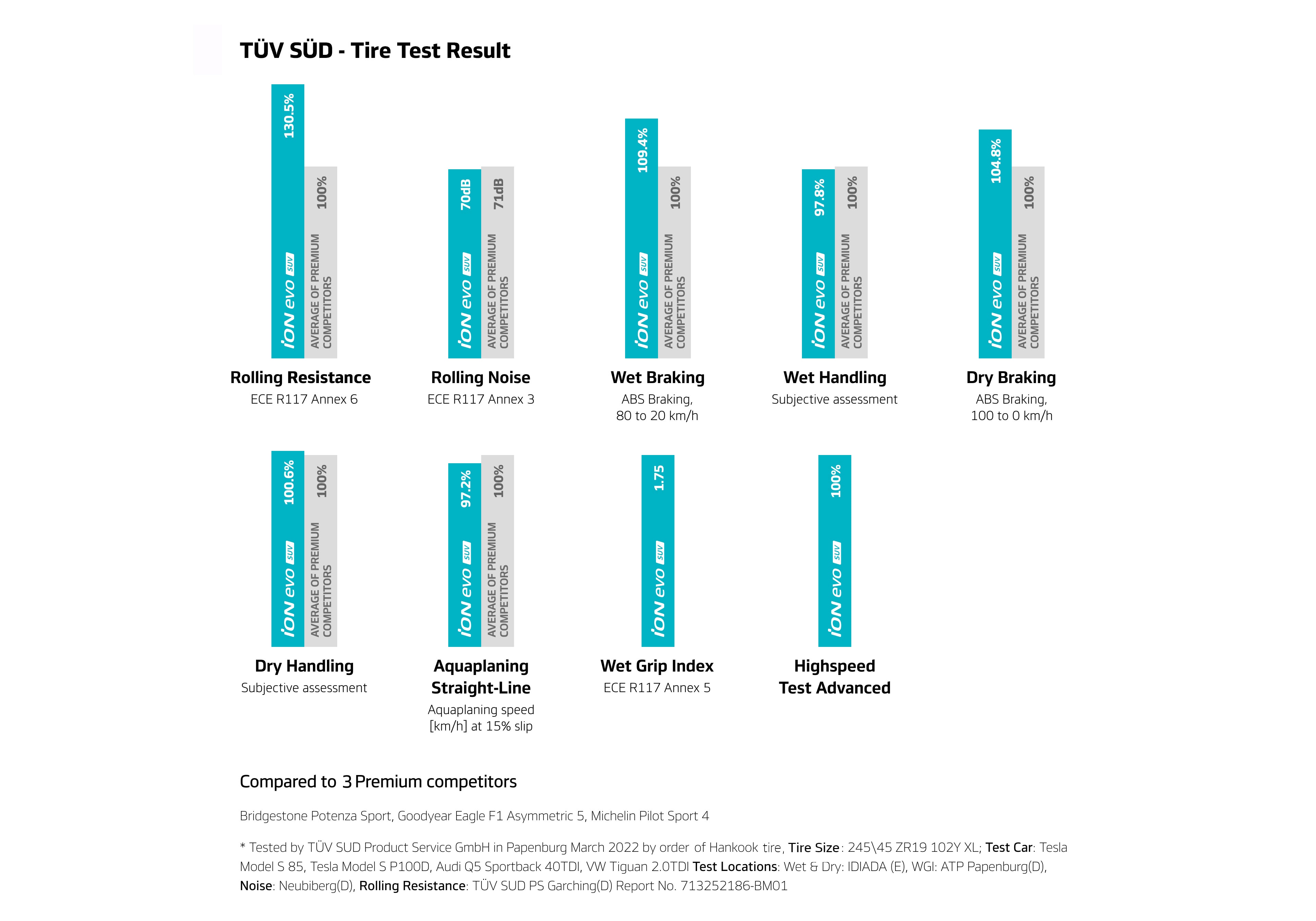 The iON evo SUV achieved a hat-trick in the EU Tire label grade which is extremely exceptional in the tire industry, and especially first for an EV exclusive tire.